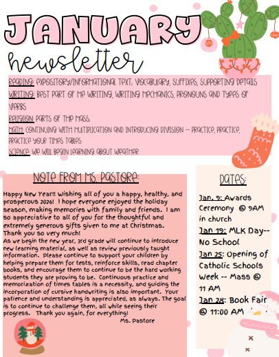 Grade 3 Room 3A Family Letter